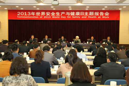 4月26日,2013年“世界安全生产与健康日”主题报告视频会议在北京召开。国家安全监管总局副局长孙华山出席会议并讲话,国际劳工组织中国和蒙古局局长霍百安出席会议并致辞。